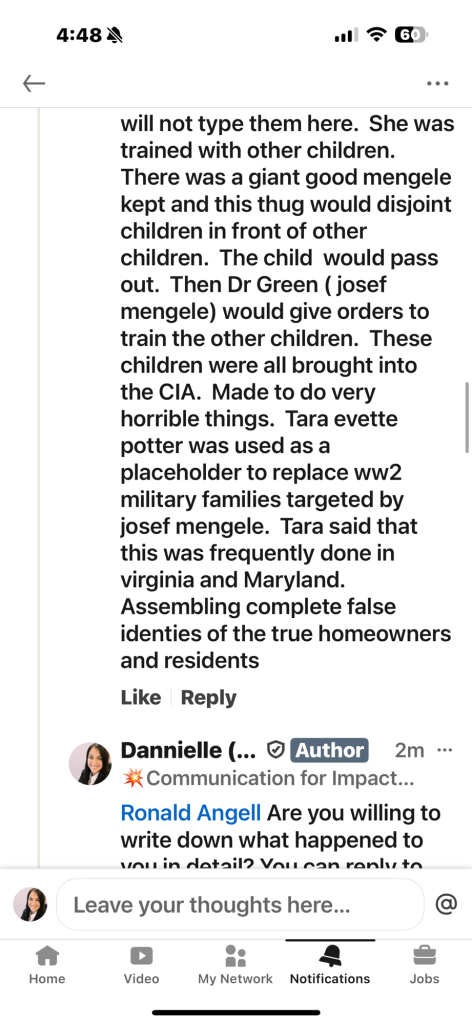 “Tara evette potter was born at the mayo clinic in minnesota most likely in 1959 as a conjoined to one of her identical sisters. Only two of the five were conjoined. A Dr Green said he could separate the two and tara potters parents gave these to this Dr Green ( Josef mengele). He took them to georgia. To the mansion behind the birthplace home of roosevelt. There Dr Green had a surgery room. He separated the two identical twin girls. Dr Green reported to tara potters parents that they two died. Thus began tara potters torture by josef mengele. What her first memories were were so horrific i will not type them here. She was trained with other children. There was a giant good mengele kept and this thug would disjoint children in front of other children. The child would pass out. Then Dr Green ( josef mengele) would give orders to train the other children. These children were all brought into the CIA. Made to do very horrible things. Tara evette potter was used as a placeholder to replace ww2 military families targeted by josef mengele. Tara said that this was frequently done in virginia and Maryland. Assembling complete false identies of the true homeowners and residents”