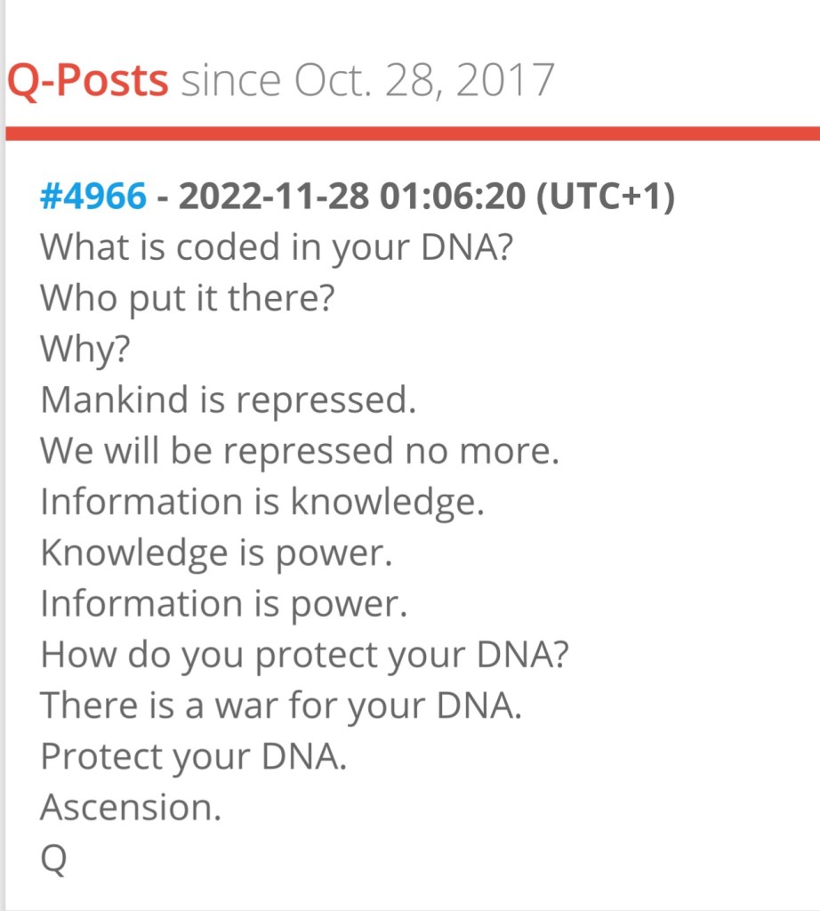 Q’s last post (11/28/2022) was directed at resisting the MK Ultra eugenics program.