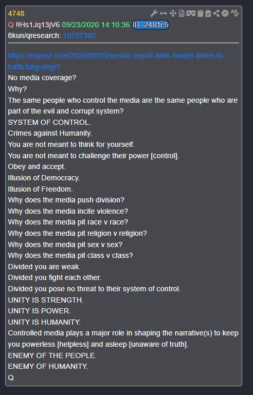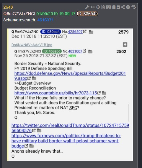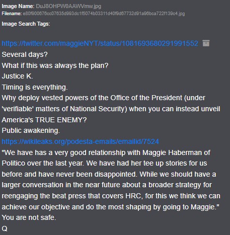 Q drops explicitly parallel this biblical framework, framing delay as a tool for public awakening rather than weakness. Drop 2648 (January 5, 2019) is central: It quotes a Maggie Haberman tweet on Trump’s emergency considerations, then asks, “What if this was always the plan? Justice K. Timing is everything. Why deploy vested powers… when you can instead unveil America’s TRUE ENEMY? Public awakening.”