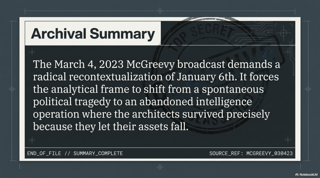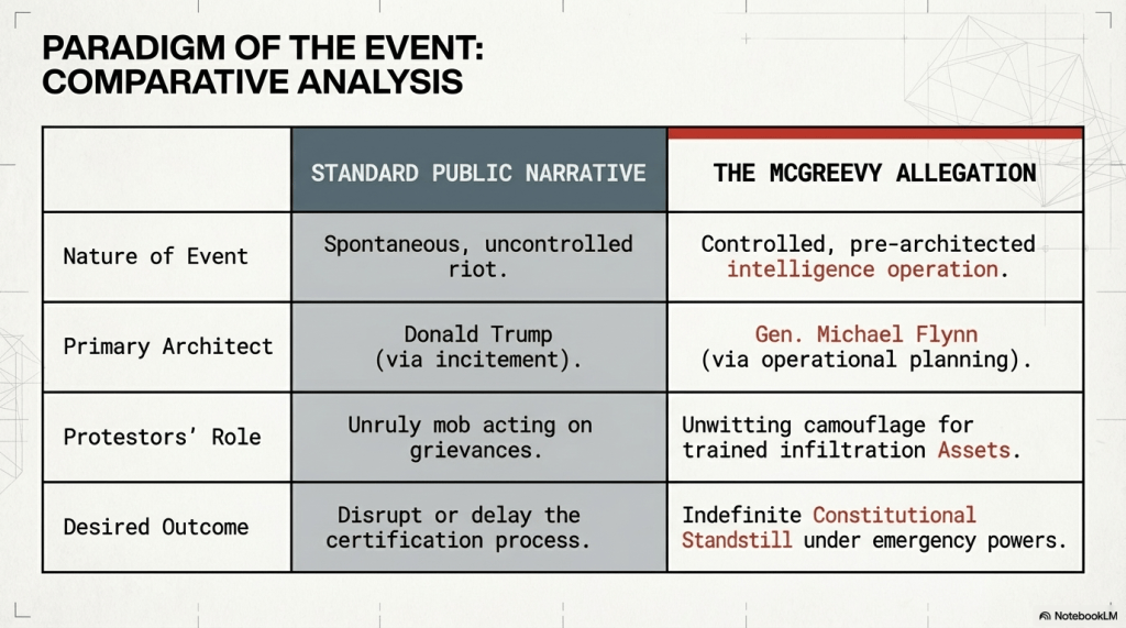 This briefing document synthesizes allegations regarding the events of January 6, 2021, specifically characterizing them as a calculated “Flynn operation.”