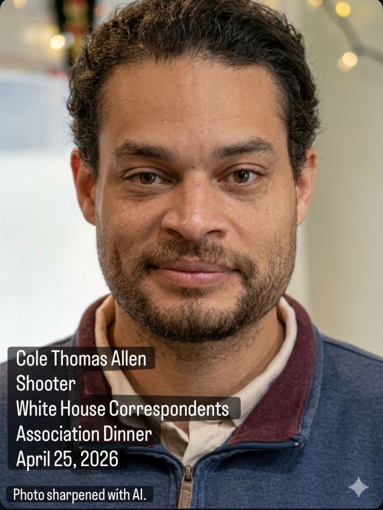 “The shooter at the DC correspondents diner was identified as Cole Tomas Allen, 31, from California. part-time teacher/tutor. Teacher of the Month in December 2024 at C2 Education. BS Mechanical Engineer, Master in Computer Science, video game developer. Donated to Kamala in 2024.